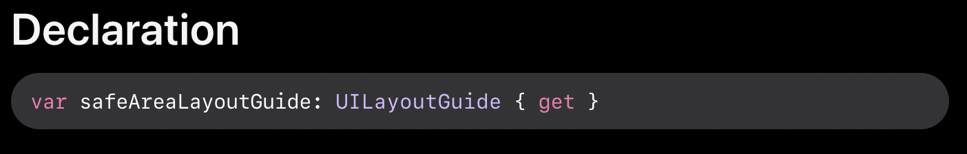 - 화면에 뷰가 띄워질 때 safeAreaLayoutGuide 는 navigation bars, tab bars, toolbars등에 의해 가려지지 않은 부분 반영(tvOS에서 안전 영역은 화면 베젤을 덮지 않은 영역을 반영합니다.)